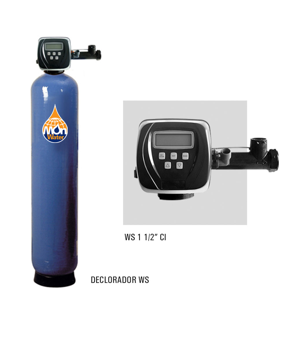 El carbón activado se usa para eliminar olor, color y sabor, producidos por impurezas orgánicas, que podemos encontrar en el agua y otros líquidos. Ultilizamos la presentación en forma granular (GAC). La eliminación se realiza mediante el proceso de absorción: retención en la superficie de átomos, moléculas, iones, de otros compuestos presentes en el agua, fundamentalmente, sustancias no polares (aceites, hidrocarburos,…) y productos halogenados (F,Cl,Br,…).Para poder utilizar el carbón activado, a nivel industrial, necestiamos elementos auxiliares como botellas contenedoras y válvulas automáticas para hacer el lavado, dando lugar a lo que llamamos DECLORADORES.